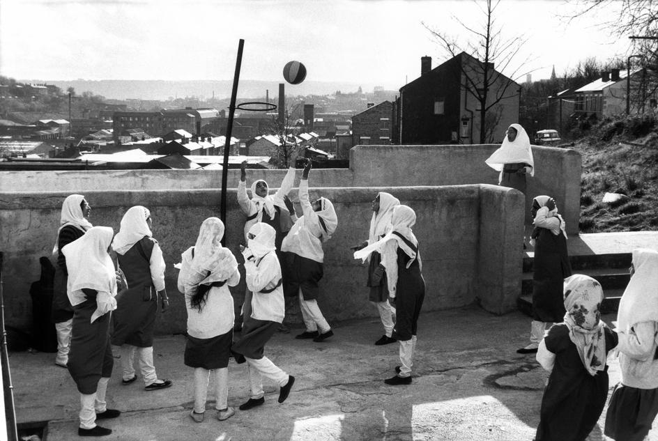 <p><b>Abbas Attar</b>, <i>GB. ENGLAND. Yorkshire. Batley. At the Zakaria Muslim Girls High School, funded by the muslim community, girls in hijab (islamic dress) play touchball. 1989</i>.</p>