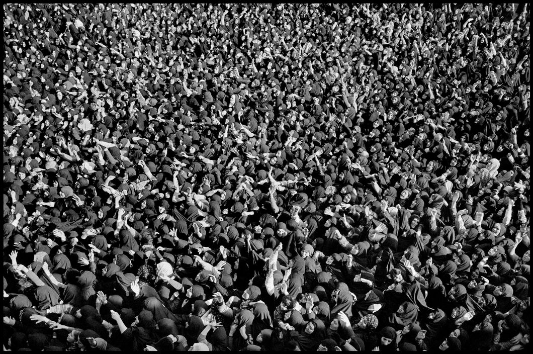 <p><b>Abbas Attar</b>, <i>IRAN. Tehran. February 1979. Refa School. A crowd of chador clad women welcome Ayatollah Ruhullah KHOMEINY upon his return from exile</i>.</p>