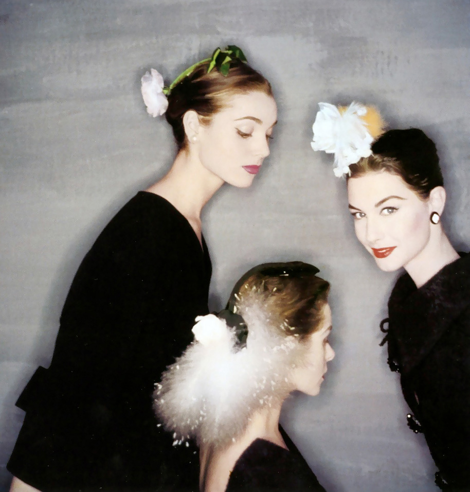<p><b>Clifford Coffin</b>, <i>Elsa Martinelli, Candy Tannev and Nancy Berg wearing Balenciaga, Vogue Paris</i>, July 1954</p>