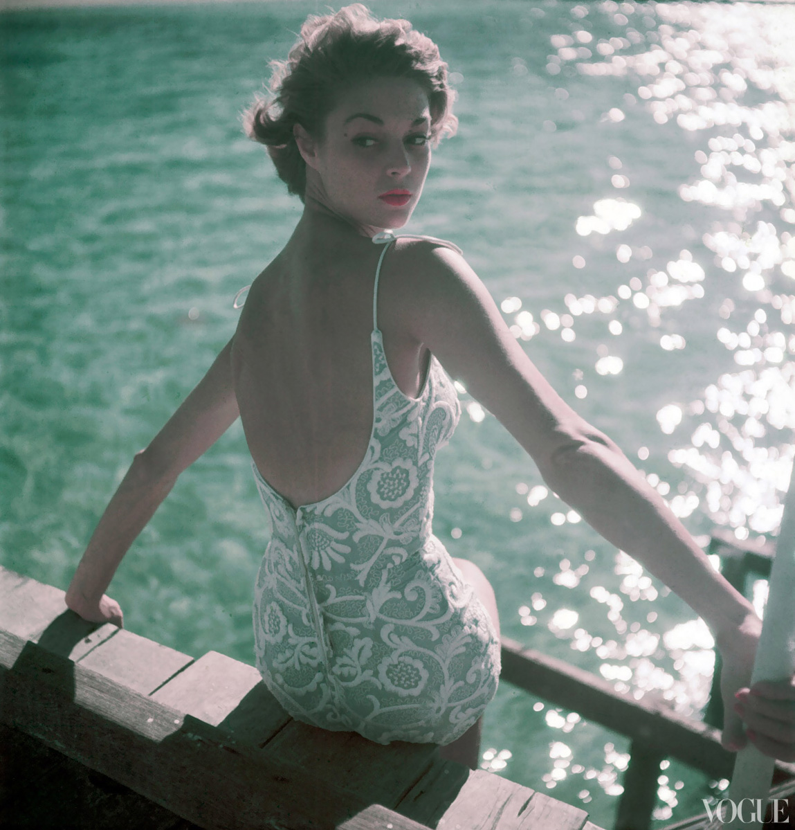 <p><b>Clifford Coffin</b>, <i>Jean Patchett wearing bathing suit by Carolyn Schnurer, Vogue</i>, 1950</p>