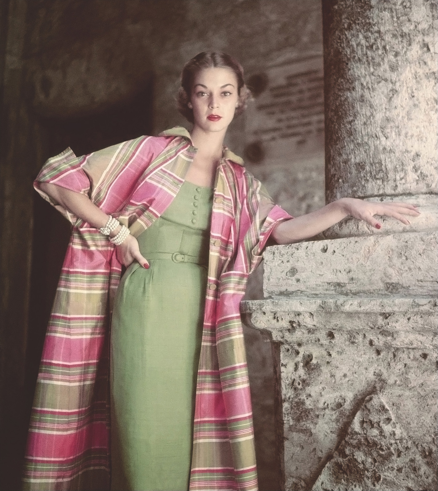 <p><b>Clifford Coffin</b>, <i>Jean Patchett wearing coat and dress by Tina Leser, Havana, Cuba</i>, 1950</p>