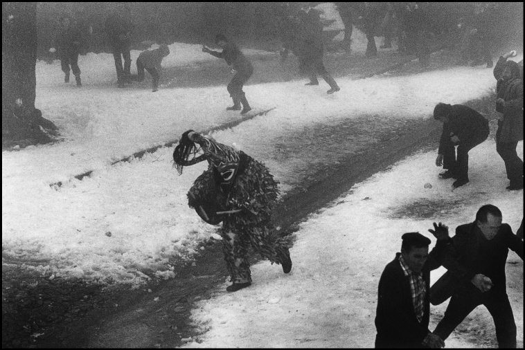 <p><b>Cristina Garcia Rodero</b>, <i>Costumed figure in the snow. Piornal, Jarramplas, Spain. 1980.</i></p>