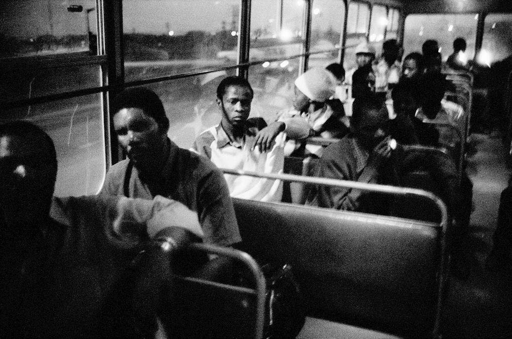 <p><b>David Goldblatt</b>, <i>Pulling out of Pretoria the 7:00 pm bus from Marabastad to Waterval in KwaNdebele</i>, 1983.</p>