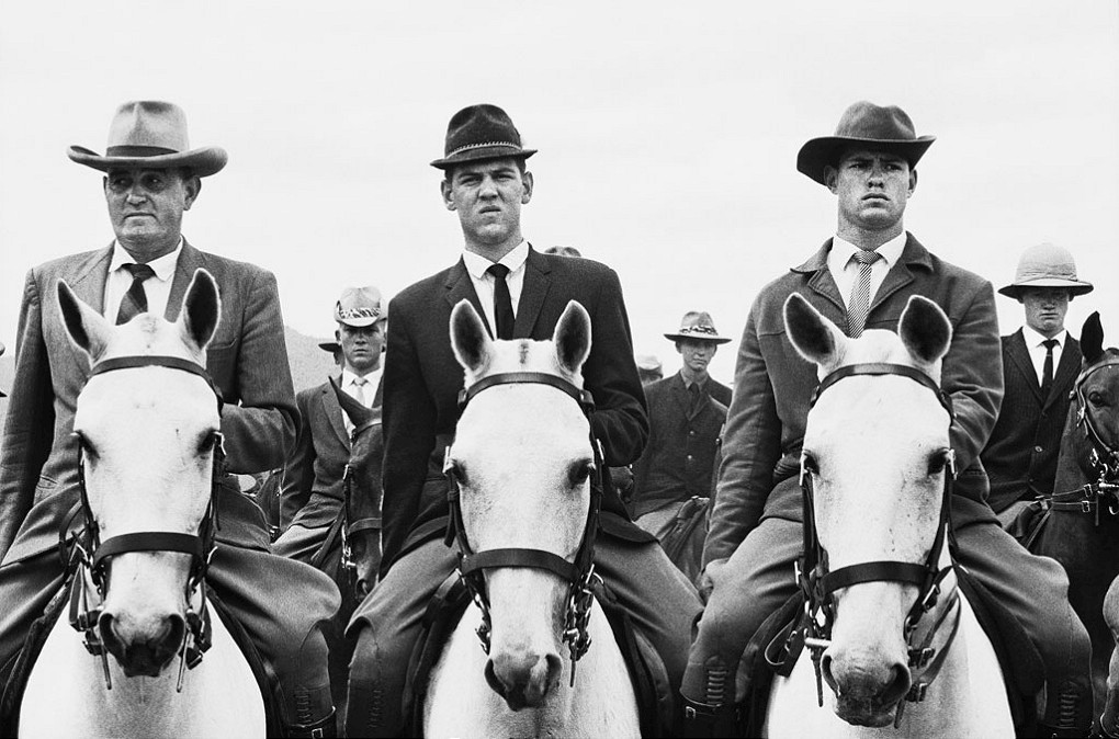 <p><b>David Goldblatt</b>, <i>The commando of National Party stalwarts which escorted prime minister and National Party leader Hendrik Verwoerd and his wife Betsie to the party's 50th anniversary celebrations at de Wildt, Transvaal</i>, October 1964.</p>