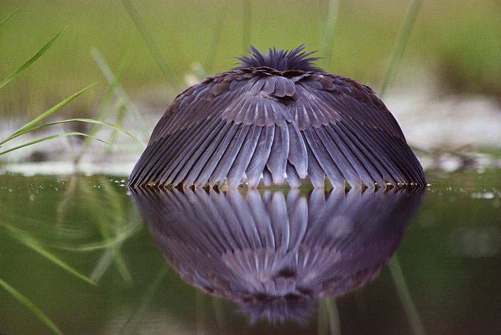 <p><b>Frans Lanting</b>, <i>Black egret fishing, Egretta ardesiaca, Okavango Delta, Botswana</i>.</p>