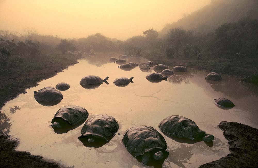 <p><b>Frans Lanting</b>, <i>Giant tortoises in pond, Geochelone nigra, Alcedo Volcano, Galapagos Islands</i>.</p>
