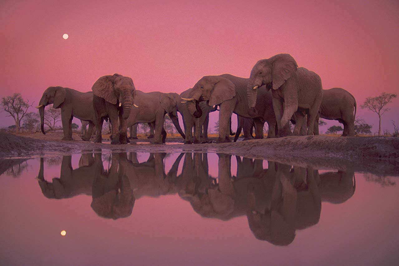 <p><b>Frans Lanting</b>, <i>African elephants at twilight, Loxodonta africana, Chobe National Park, Botswana</i>.</p>