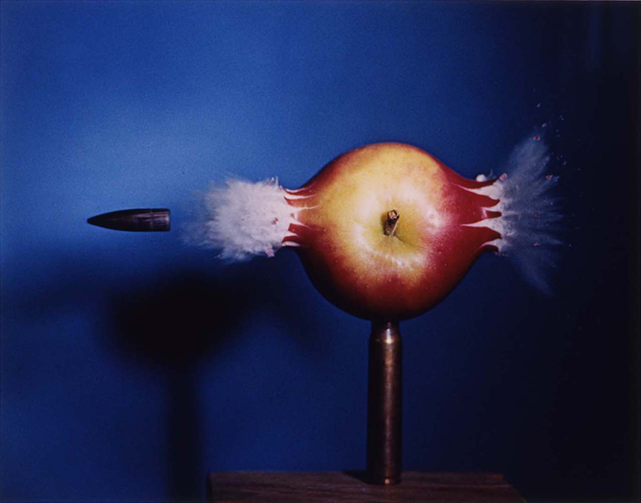 <p><strong> Harold "Doc" Edgerton</strong>, <i>Bullet Through Apple</i>, 1964</i>, microflash.</p>