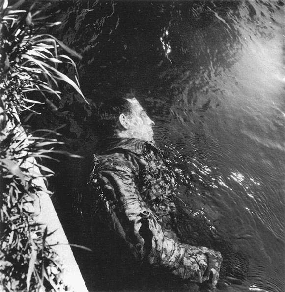 <p><b>Lee Miller</b>, <i>SS Guard in Canal</i>, 1945.</p>
