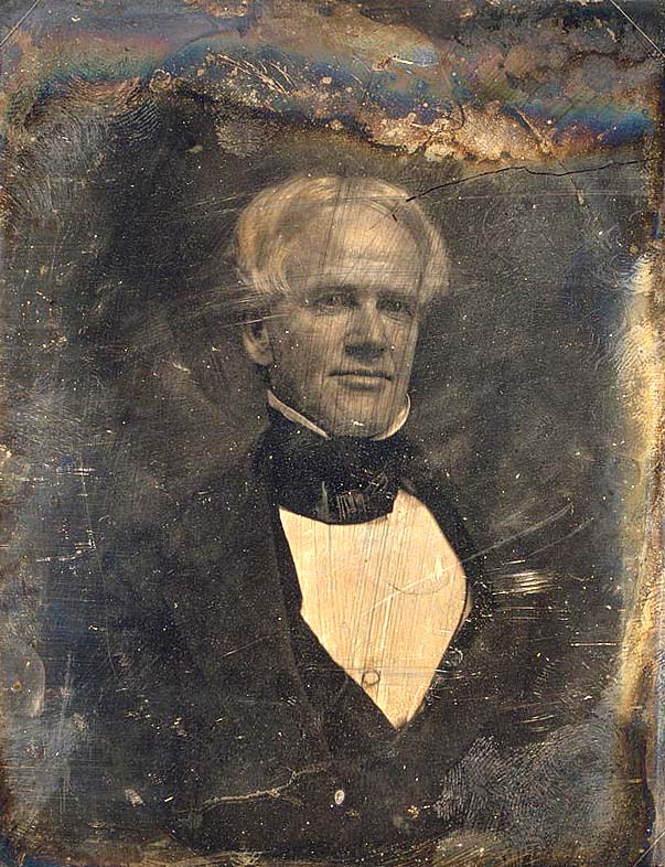 <p><b>Mathew Brady</b>, <i>Horace Mann, head-and-shoulders portrait, three-quarters to right</i>, between 1844 and 1859, half plate daguerreotype, gold toned</p>