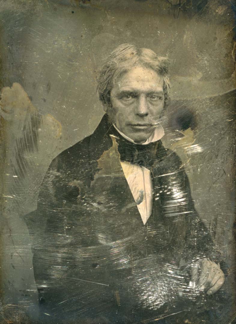 <p><b>Mathew Brady</b>, <i>Michael Faraday, half-length portrait, three-quarters to the right, seated in chair, hand resting on table</i>, between 1844 and 1860, half-plate daguerrotype, gold toned</p>