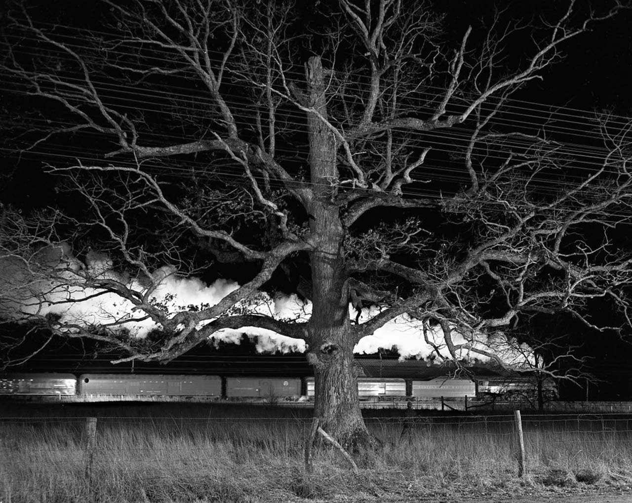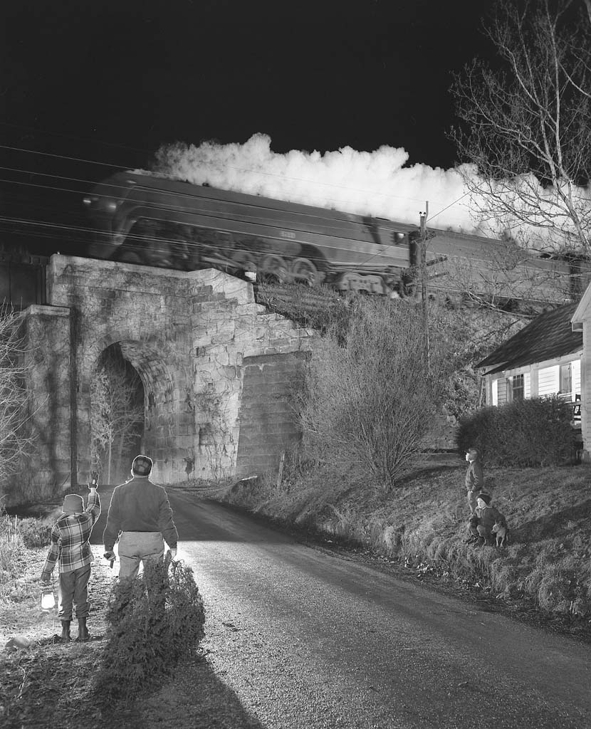 <p><b>O. Winston Link</b>, <i>NW 1643 Train No. 17 The Birmingham Special Passes a Giant Oak, Max Meadows, Virginia, c.1957.</i></p>