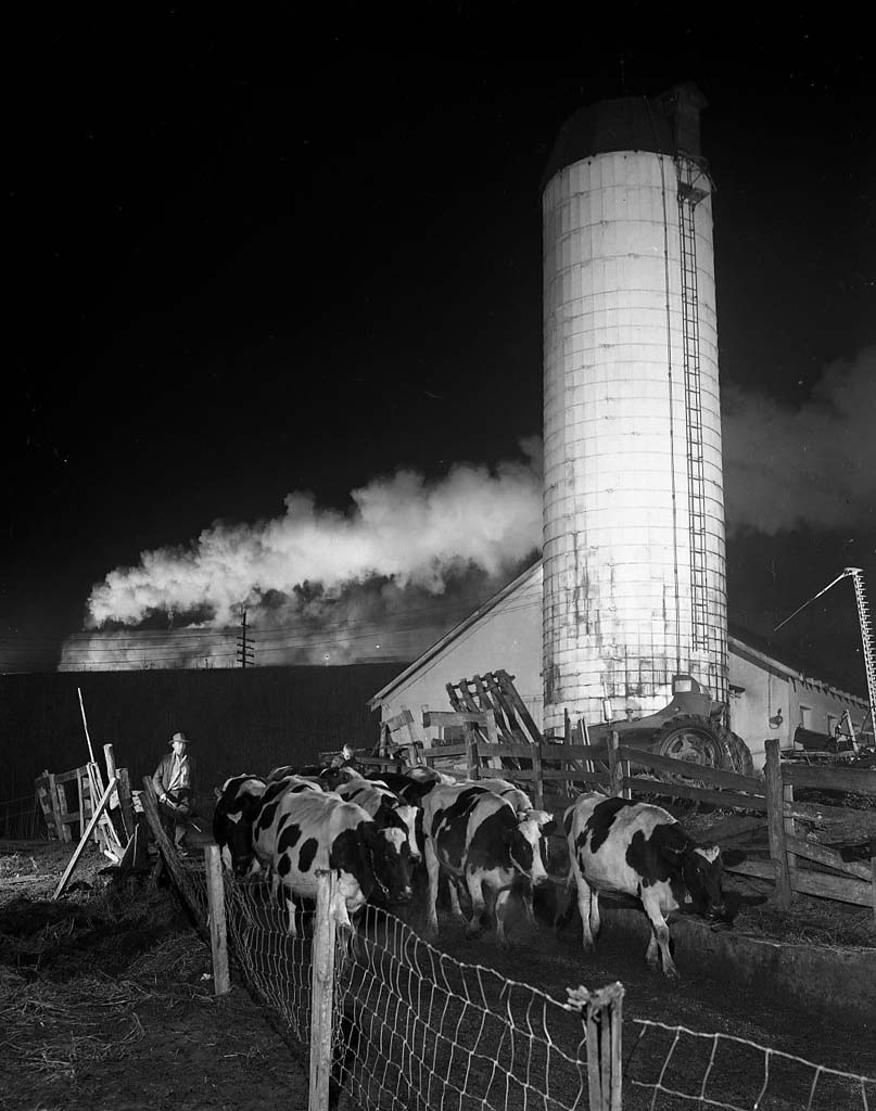 <p><b>O. Winston Link</b>, <i>Cow 13 and the Pocahontas No. 3, Shawsville, Virginia, 1955.</i></p>
