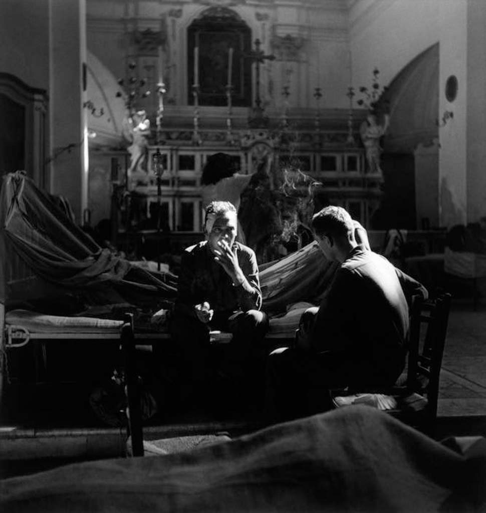 <p><b>Robert Capa</b>, <i>ITALY. Maiori. September 19, 1943. Two soldiers in a hospital set up in a church.</i></p>